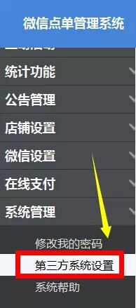 1.进入新微云微信点单管理系统,在“系统管理”栏下,点击“第三方系统设置”