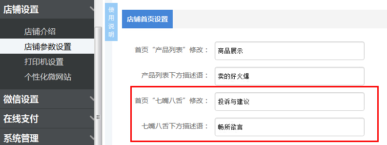 此外,我们首页展示风格的“七嘴八舌”板块,现已支持商家自定义其显示名称,如图: