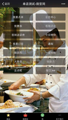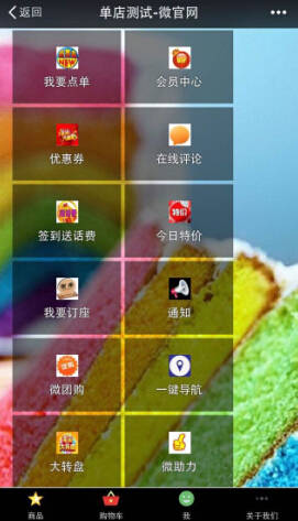 3、接下来就是对底部导航条的设置了,导航条的颜色,名称及图标等都可以自由设置。(导航条也有两种模板风格:微信公众号自定义菜单样式和图文样式,商家可根据喜好选择)
